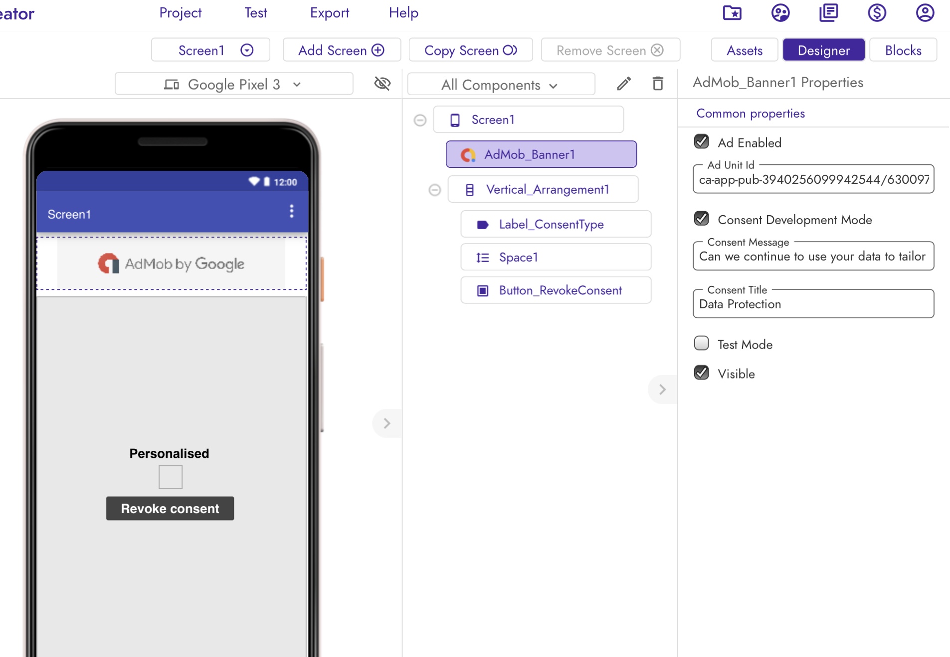 However, we need to let the users control the ad type. So now when you press Revoke Consent button it loads the ad again. My testing on the companion has shown this makes the Consent message pop up again.