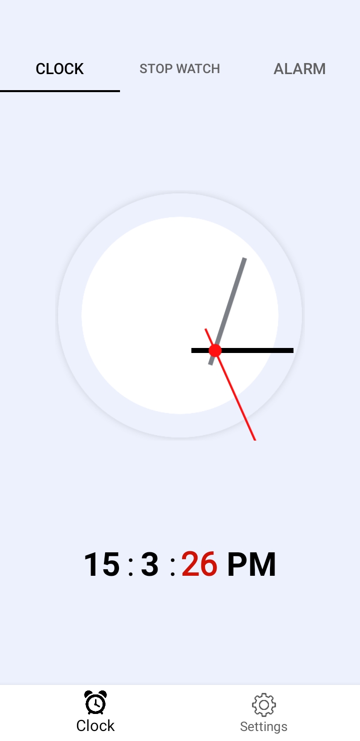 Hello i created clock app. in this app i serve the local time of your place , Stop watch and alarm with better UI as you an see the preview in screenshot. if you want to test the app i will provide you the apk file also. and if you want to purchase this app then i will sold it at 10$ or if you to your desirable price then PM me