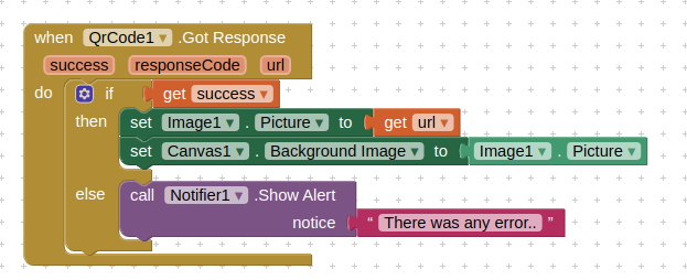 I tried the following code in Thunkable together with the QR extension and it works. I wanted to make my first app in Makeroid as an example to add with my tutorial.