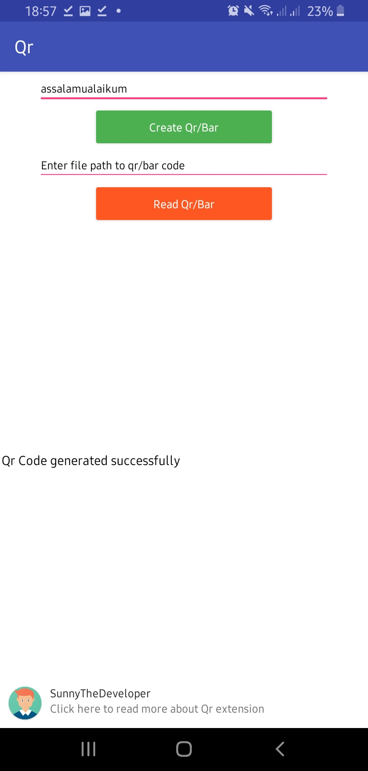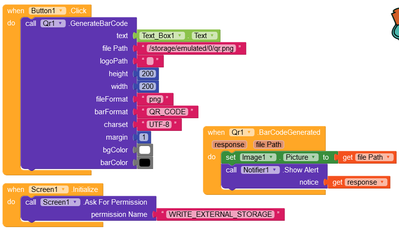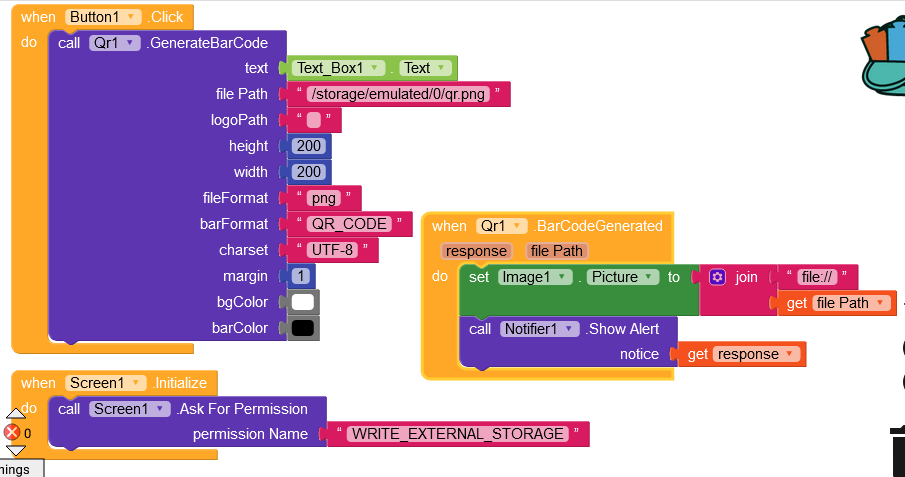 I have this but it shows this error:/qr.png: open failed: EROFS (Read-only file system) I am running android 11 on a s20 FE. Also If I want to create a barcode do I just change âQR_CODEâ to âBAR_CODEâ ?