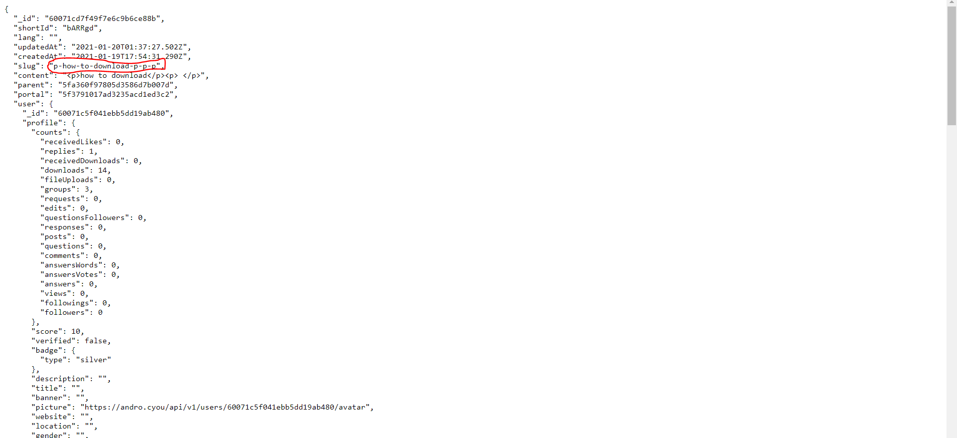 For example can u plz tell me if i want to get the SLUG value from the URL https://andro.cyou/api/v1/posts/60071cd7f49f7e6c9b6ce88b