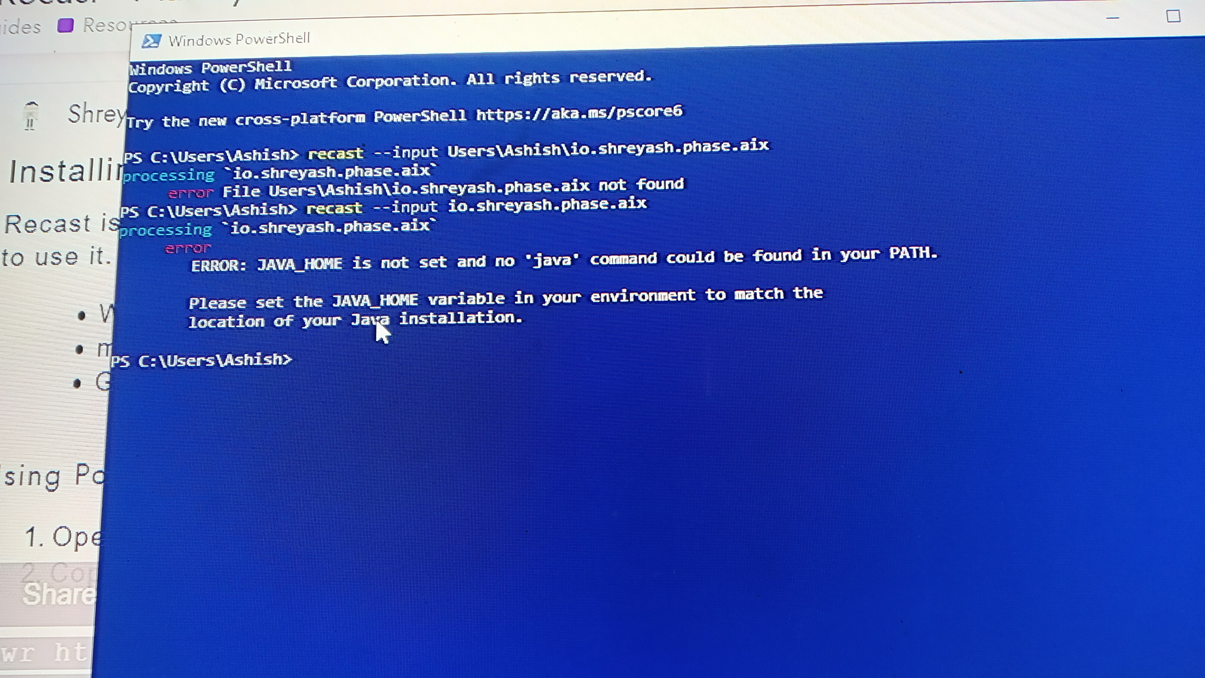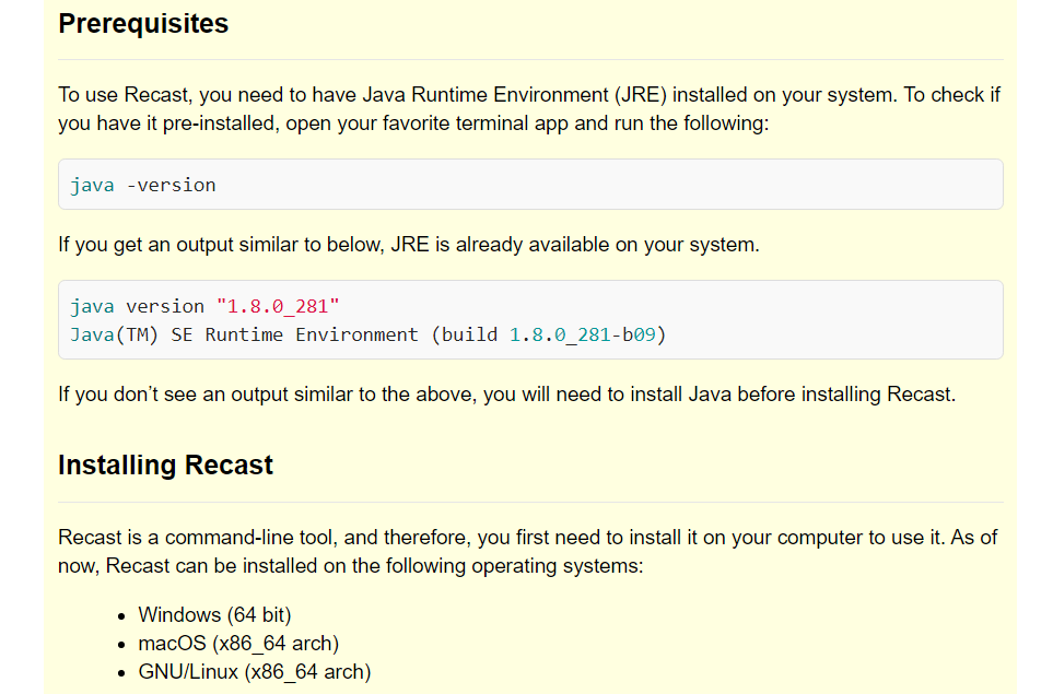 As you can see in the first post in order to use Recast you need Java JRE installed in your system so either java isn’t installed or path isn’t configured correctly
