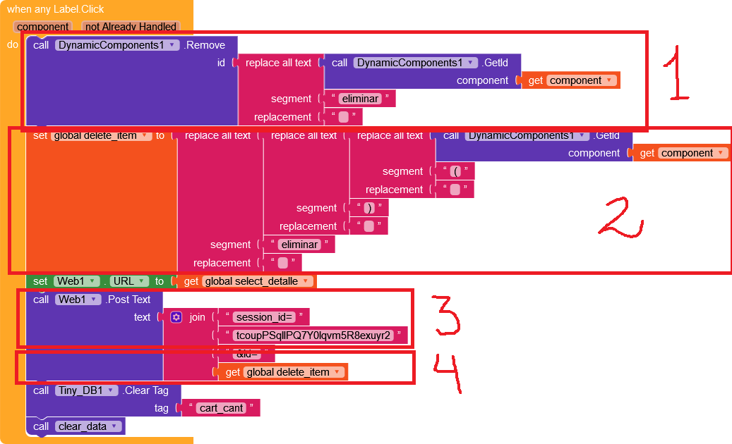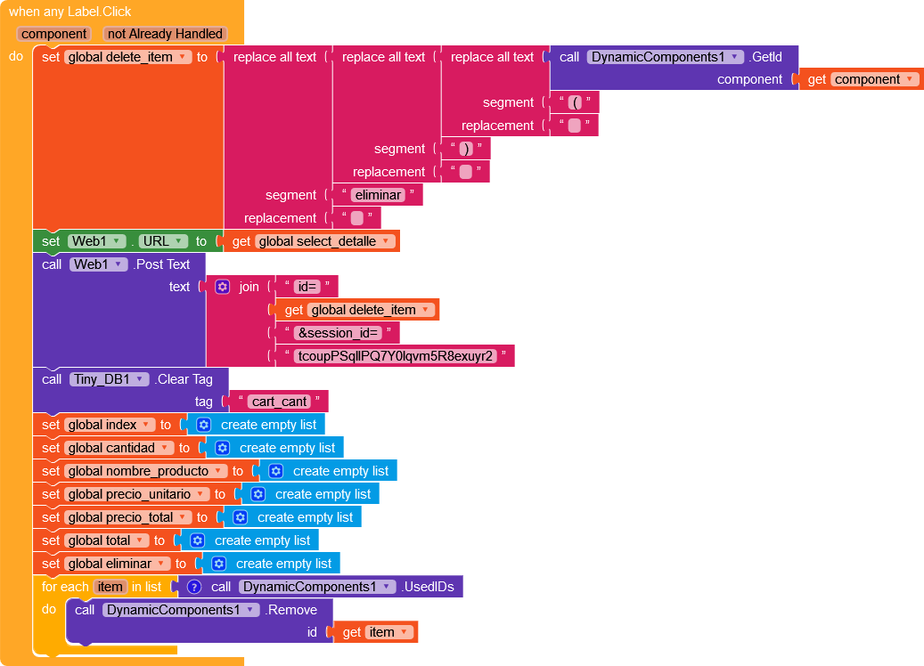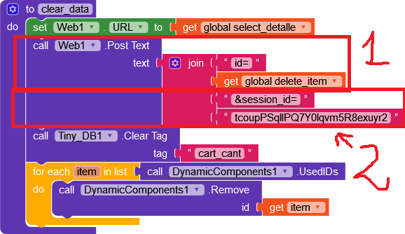 Edit new information: I was reviewing the code, I broke it down and put it together little by little and I realized that when the last item is deleted the data is not updated no matter how many times you touch the button the item is already deleted but Web1 Got Text I don’t know updates and therefore the value that no longer exists is always being shown… now you ask me, how do I remove it?