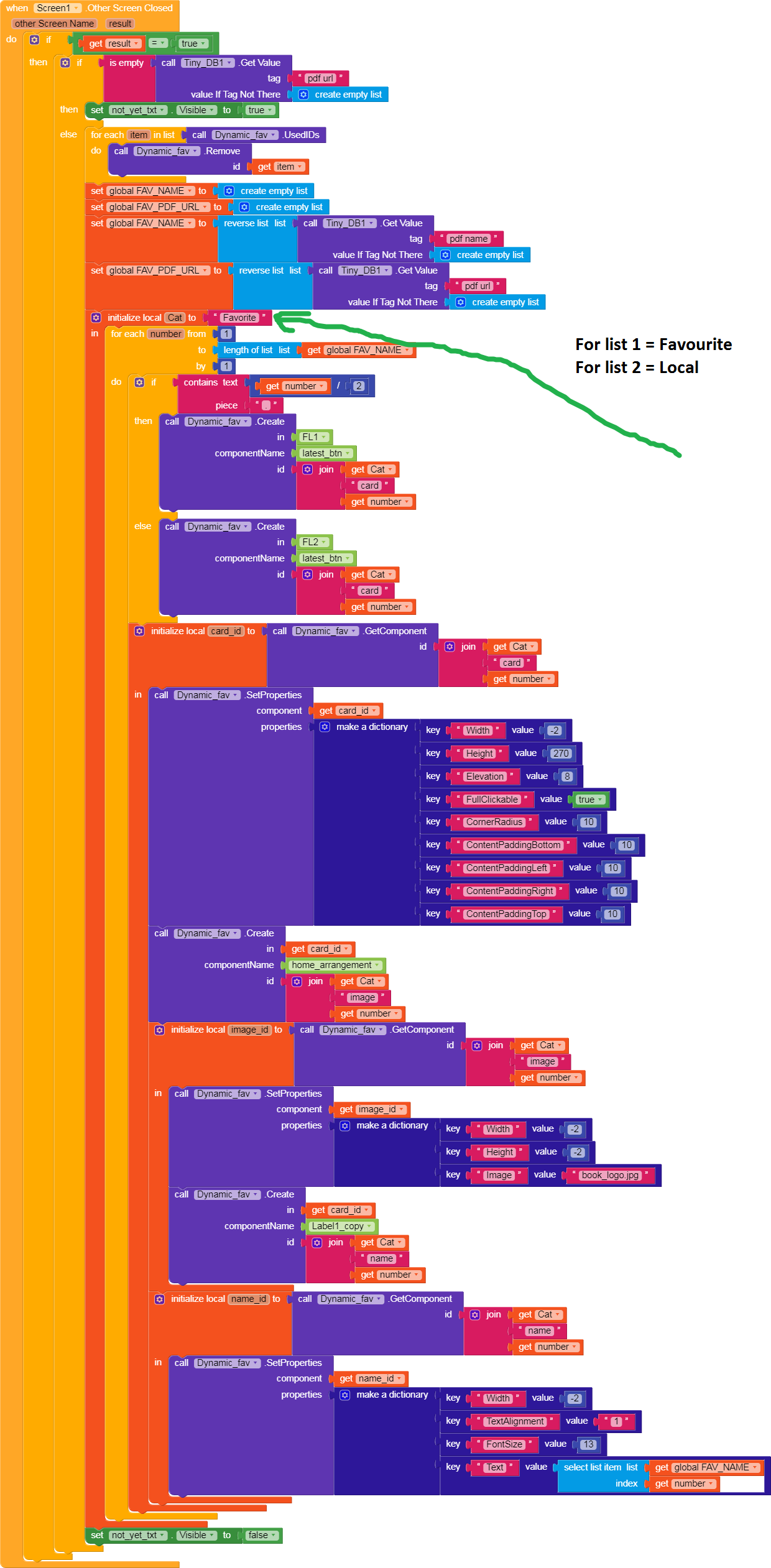 Show us the blocks, how do you create the Dyna compo. On clicking the item why do you clear the tag? Actually it seems every time you are wiping the tinydb. If so then what is the use of tinydb?