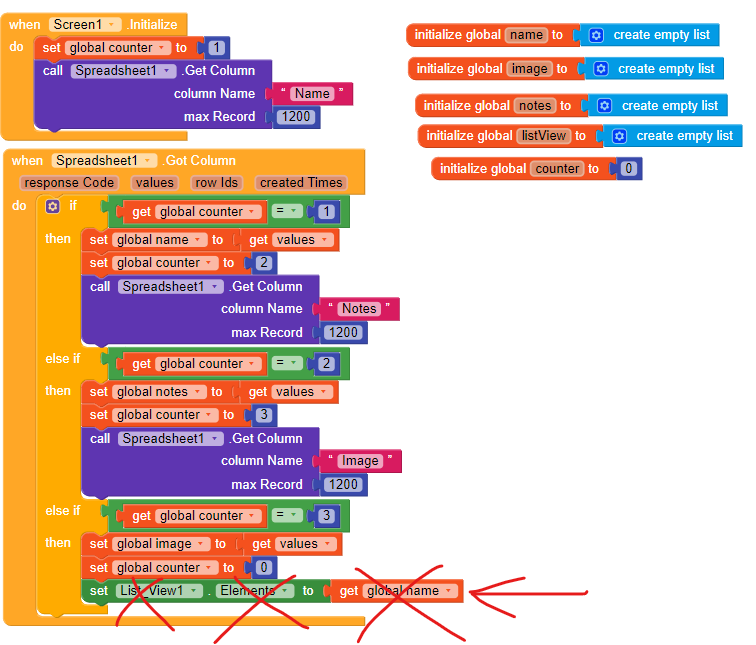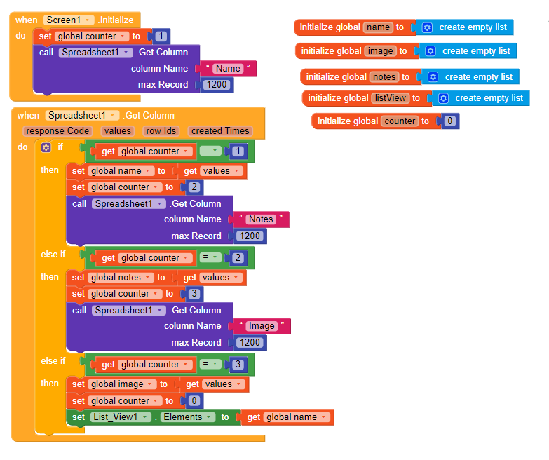 @asimjib93 With the help of these blocks I am not getting the desired thing what I want can you please help me as I need Only specific rows but by using these blocks whole data is stored in list view so can you please tell me what should I add or remove so that what I want I can get.