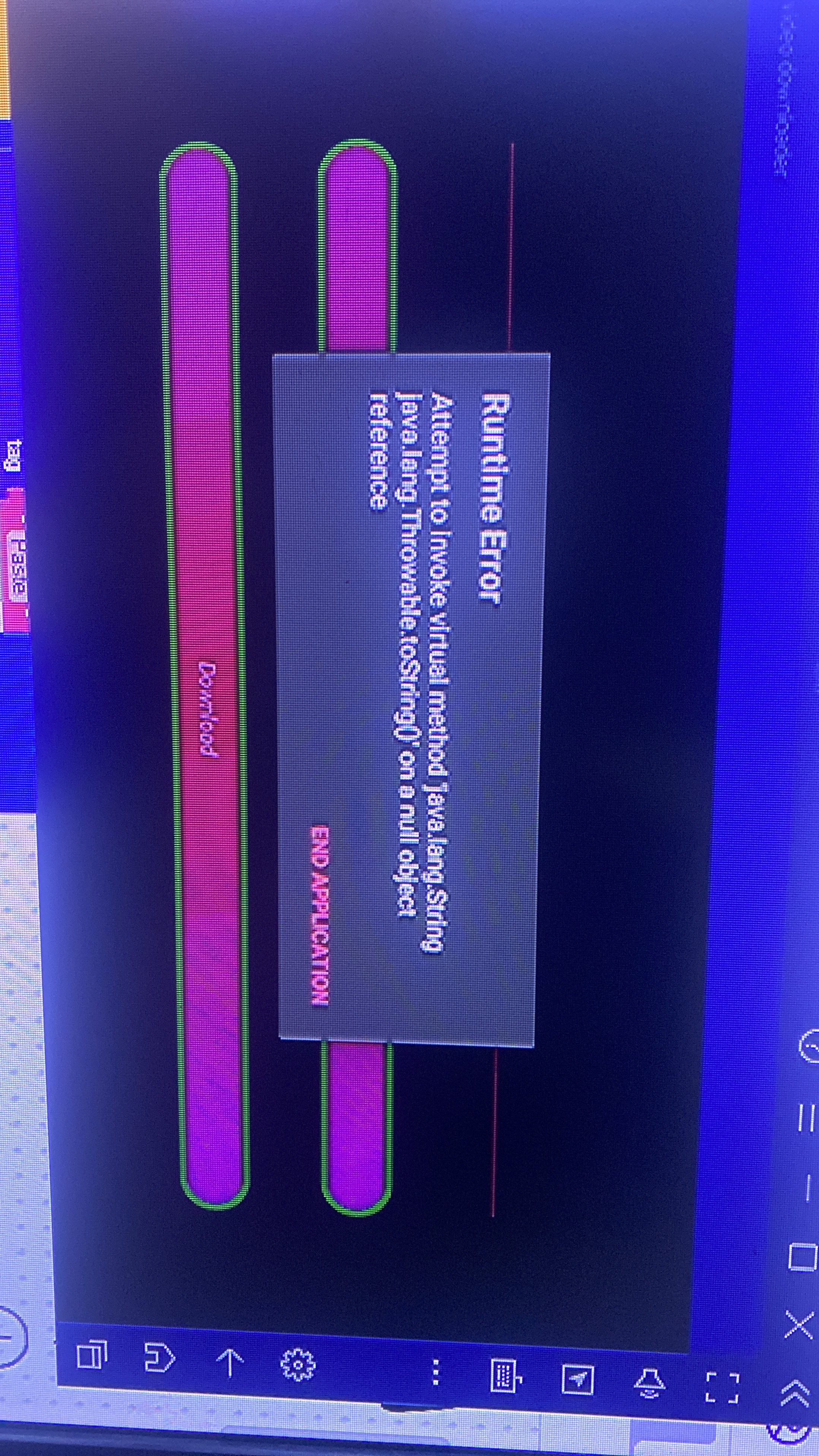 Please help to fix it… Runtime Error Attempt to Invoke virtual method java.ang.String java.lang.Throwable.tostring@'on a null object refenence