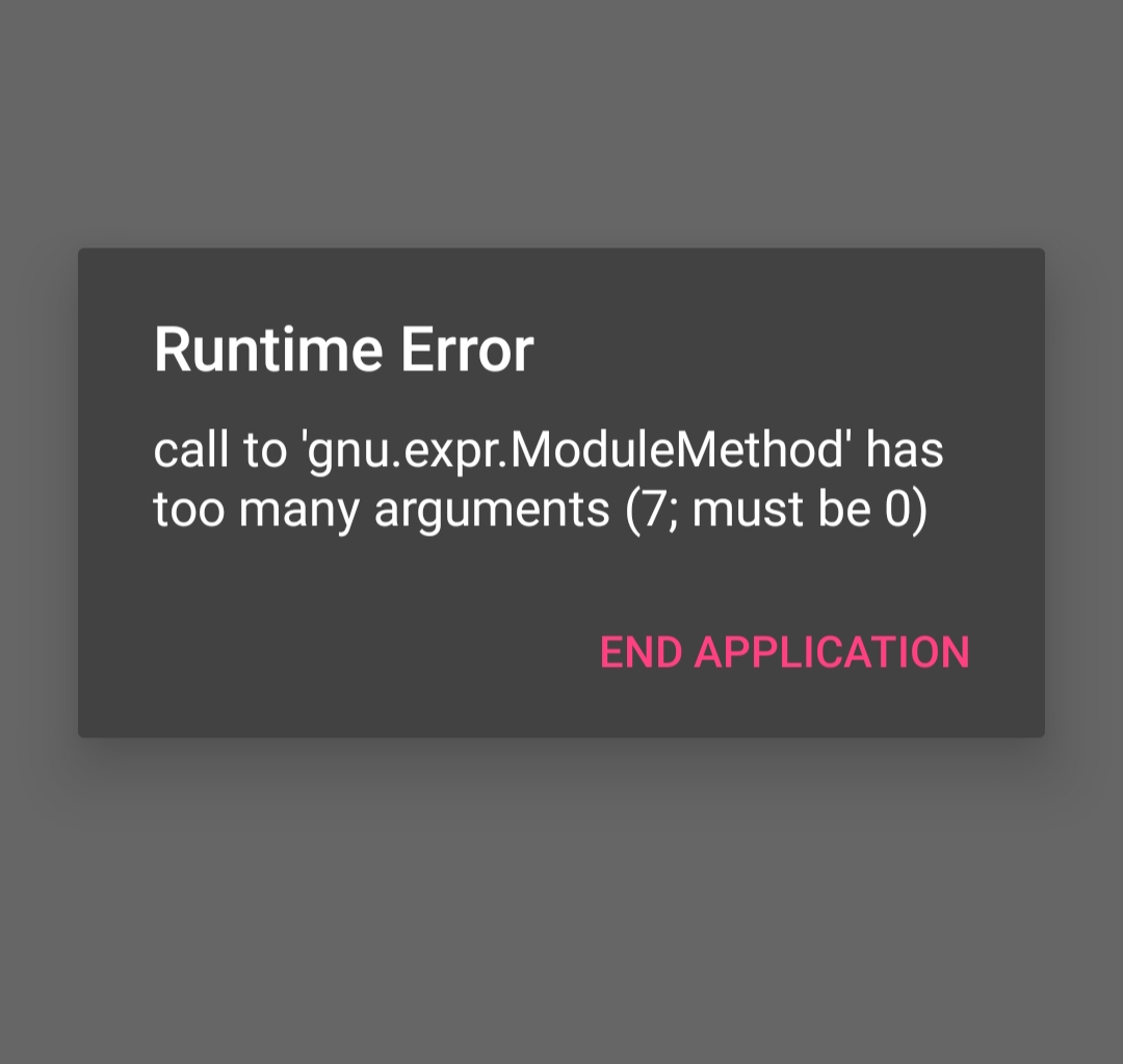 Runtime Error call to ‘gnu.expr. ModuleMethod’ has too many arguments