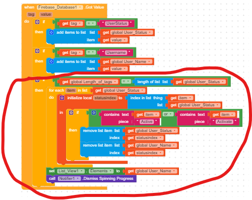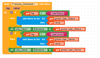 Your if conditions allow u to add item only to one list. So u have two lists: User_Status and User_Name. At first time firebase got value and tag = UserStatus, you add the value to User_Status and not to User_Name. Then you have the loop where u remove an item form User_Name.