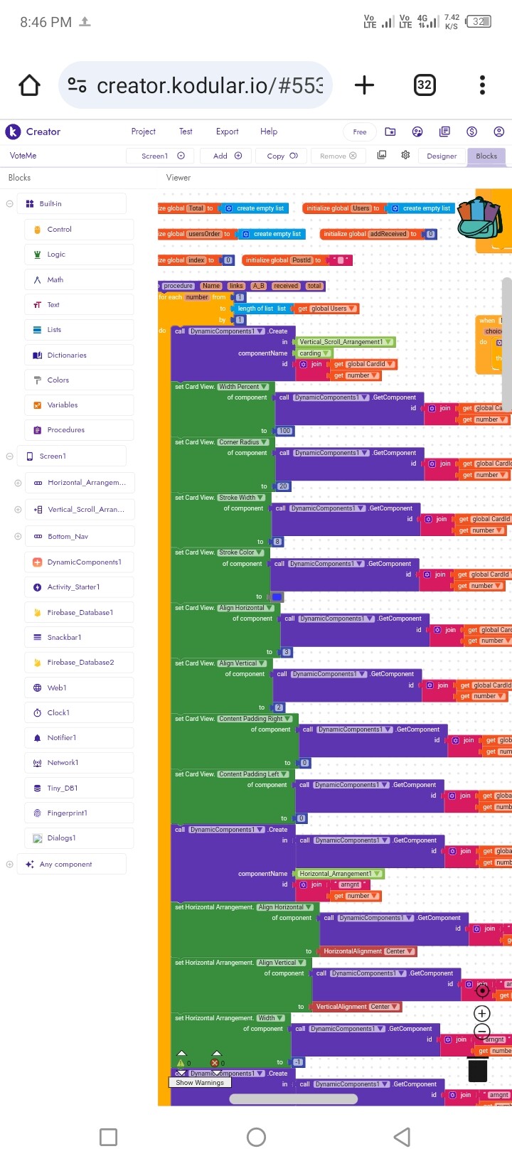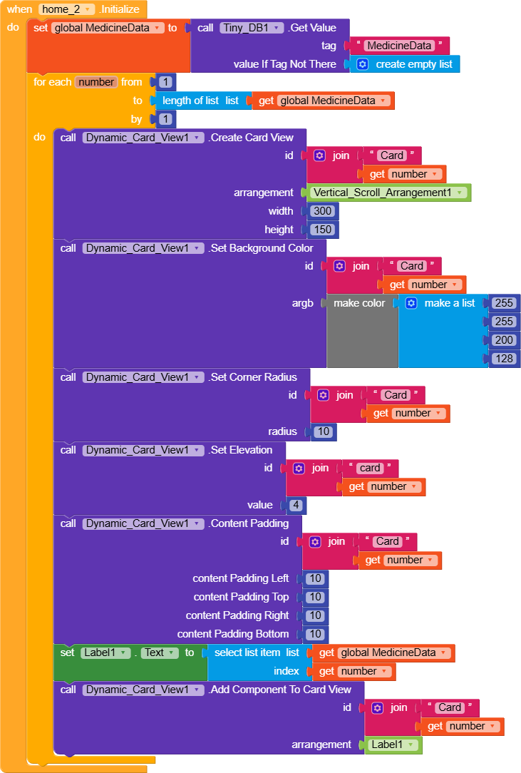 Blocks Used: I am creating a dynamic card using the Create Card View block and passing the ID using the join formula like “Card” + index, and the arrangement is Vertical_Scroll_Arrangement1.