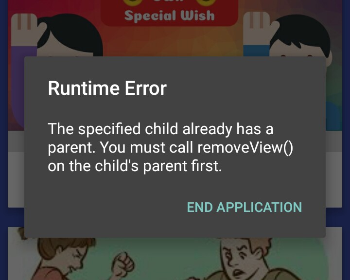 The specified child already has a parent. you must call removeView() on the child’s parent first.