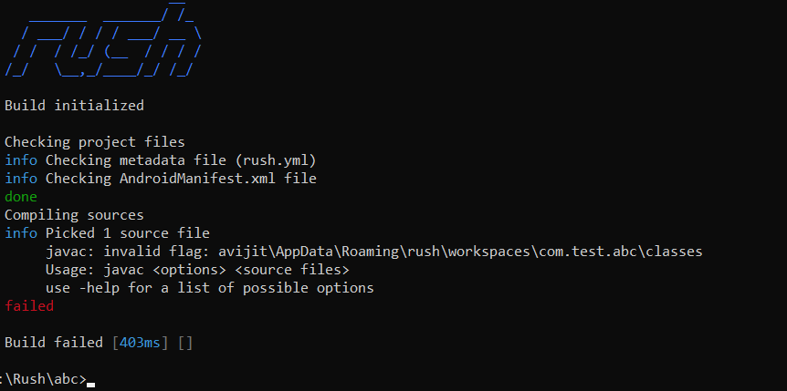 Make sure that the JAVA_HOME environment variable points to JDK 8 installation. Rush doesn’t supports JDKs other than version 8.