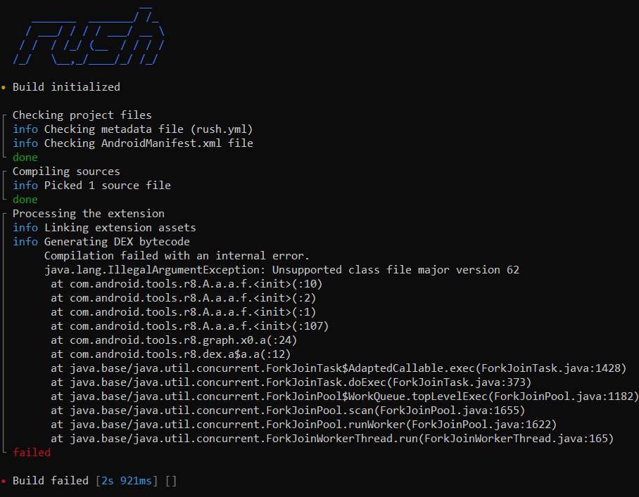 I am new to extension dev. I have installed rush and created a new project. When I try to run “rush build” command it gives this error.