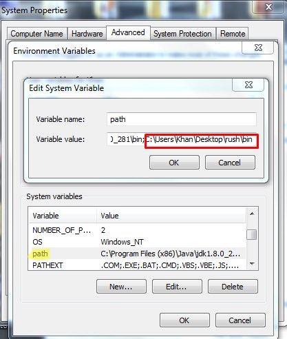 i am using window 7, i install jdk 8, i kept rush unzip file in desktop.