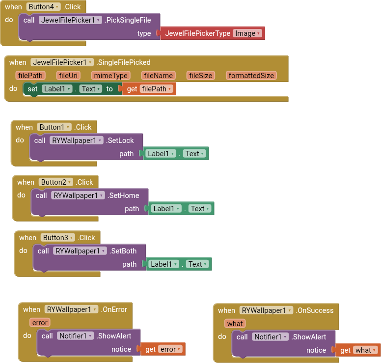 Description : This extension allows you to set wallpapers directly from your App Inventor or Niotron application.