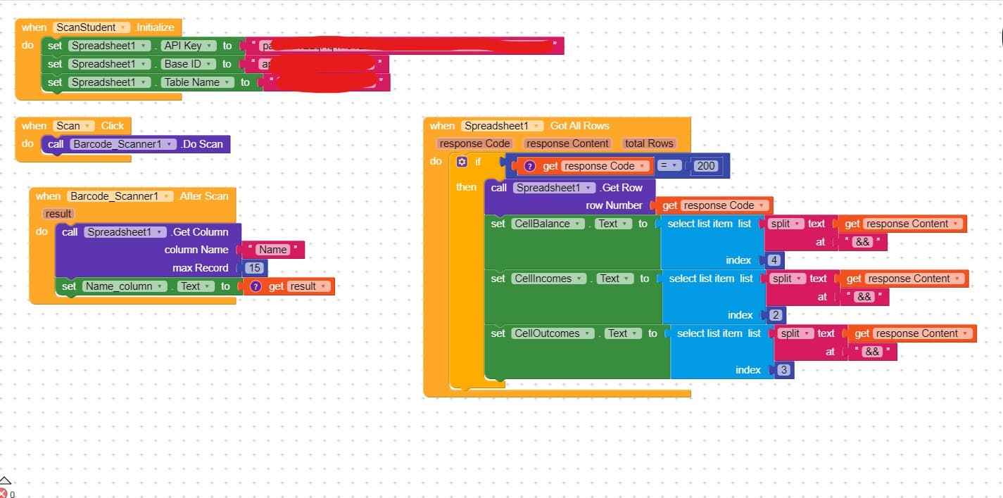 I am trying to develop a royalty app for my students. I have created a spreadsheet using airtable and I have linked it to my project. So, I created a screen where the students can scan their unique QR code, so as to access their balance, their incomes, and their outcomes. But despite the fact that when I scan a QR code, the student’s name is displayed, the income/outcome/balance does nothing. I have tried everything, but nothing works for me…