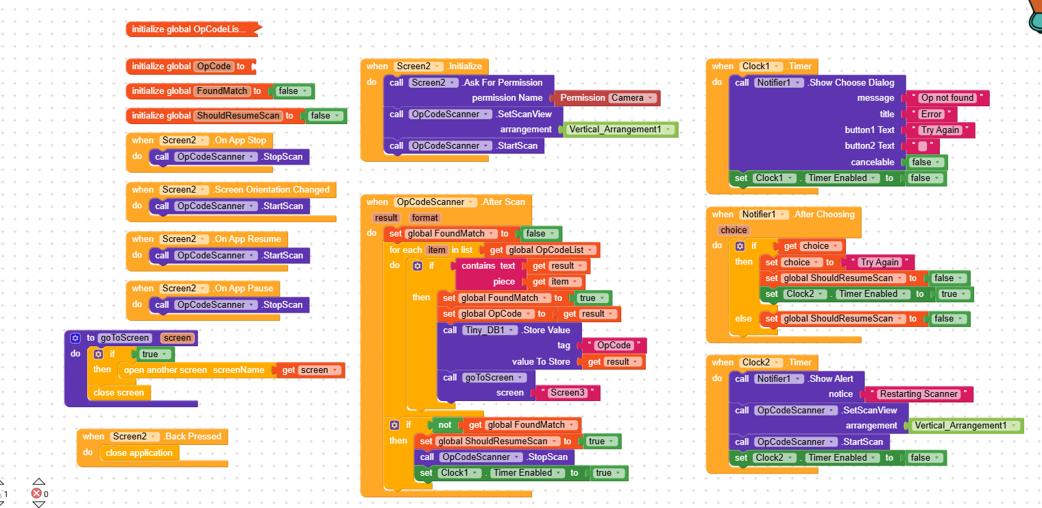 Add a back button pressed event on Screen3 together with a close application block