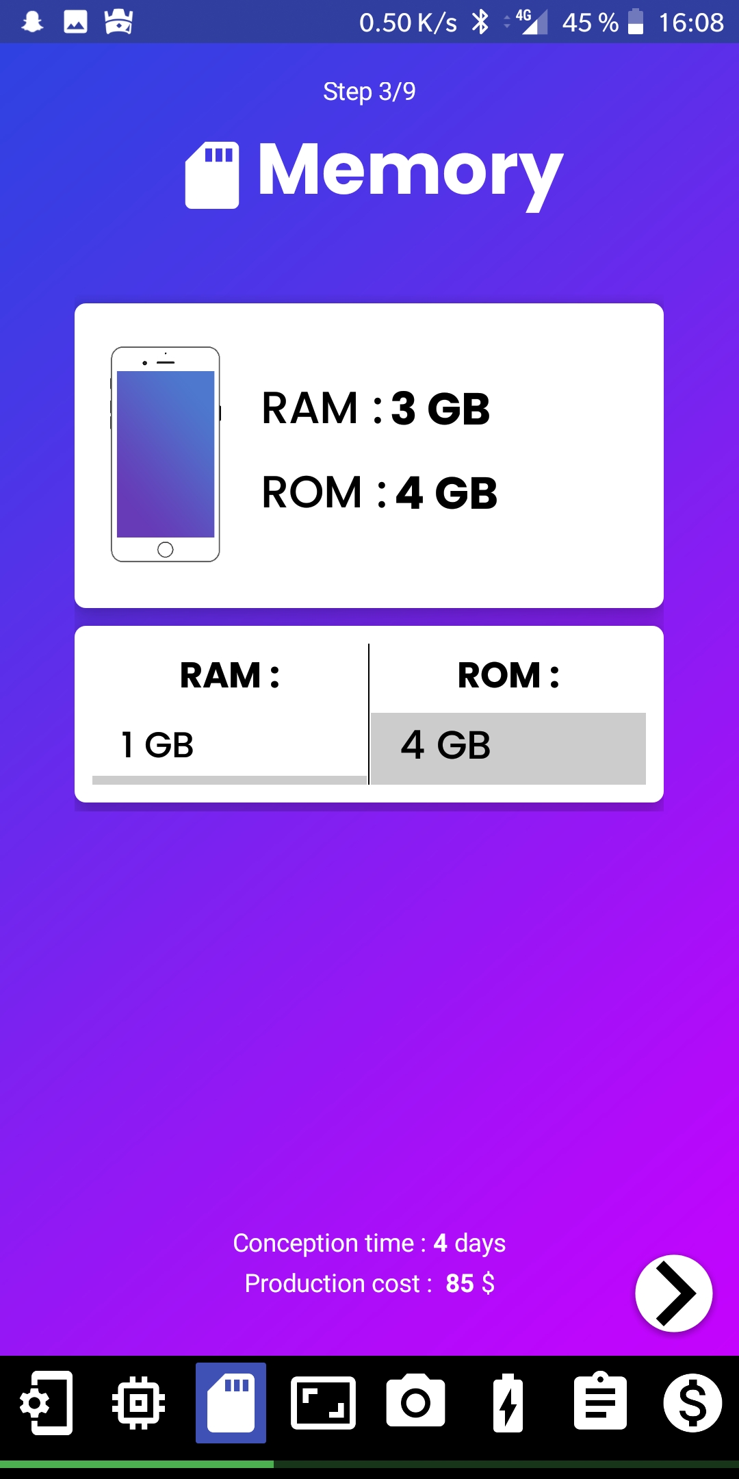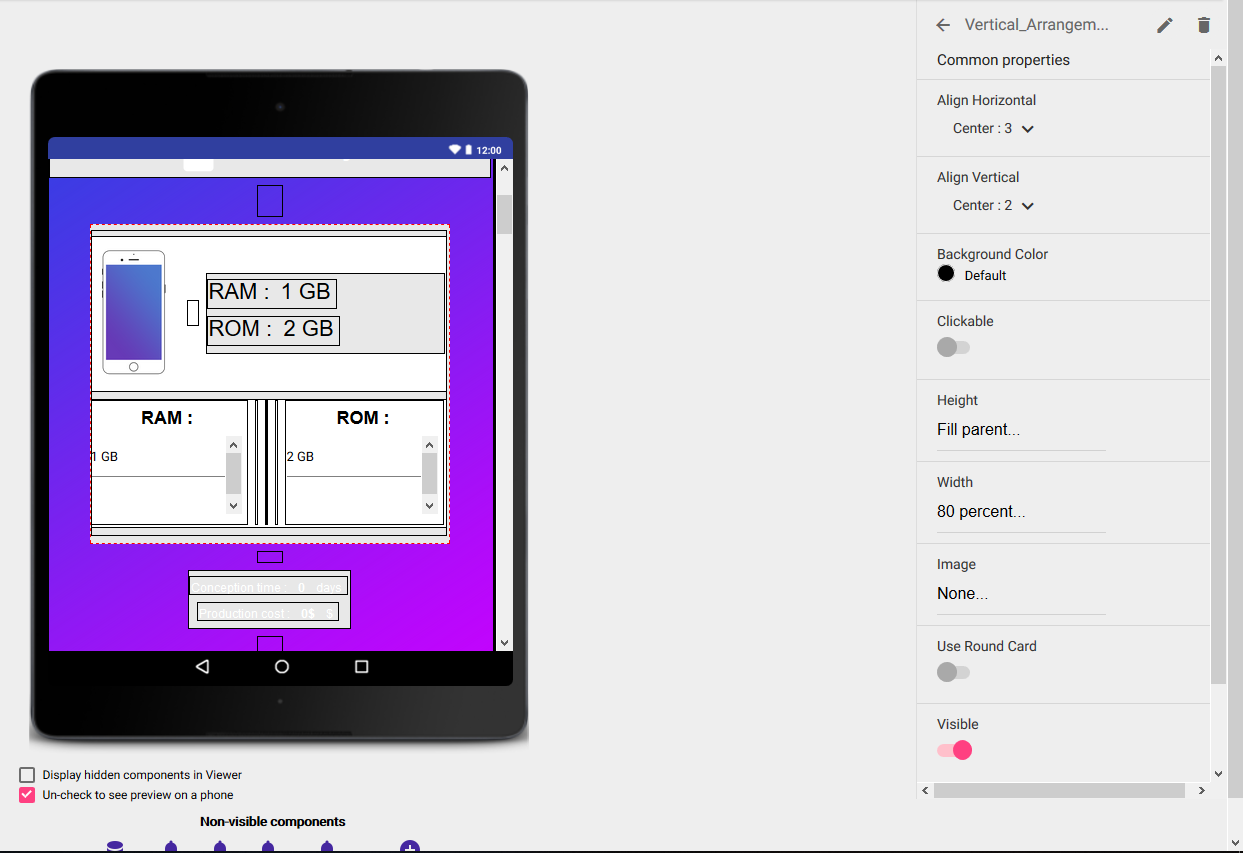 Then put a scrollable arrangement and set his weight to “Fill parent”