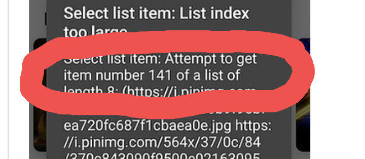 Friend, the problem is in the Select Item block. You are trying to get index 141from a list with length 8.