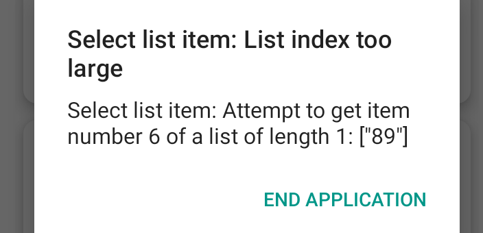 The message is clear. You try to get the 6th item from a list that has only 1 item. This is a logic error in your blocks.