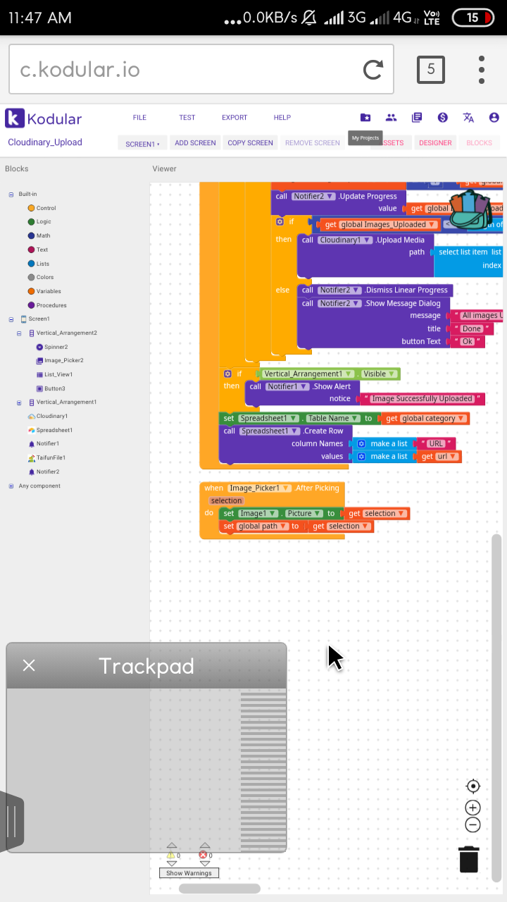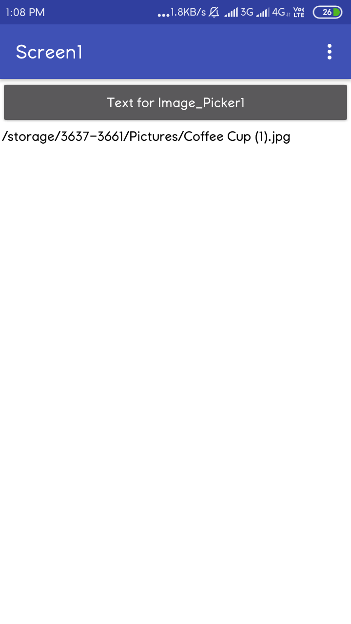 This is the block after picking image. The problem now is that if I select an image from internal storage then it is shown on the image but when I select the image from External SD Card then it is not working. However I can still Upload the image to Cloudinary ( which is the main work of the app) selected from SD Card