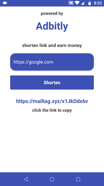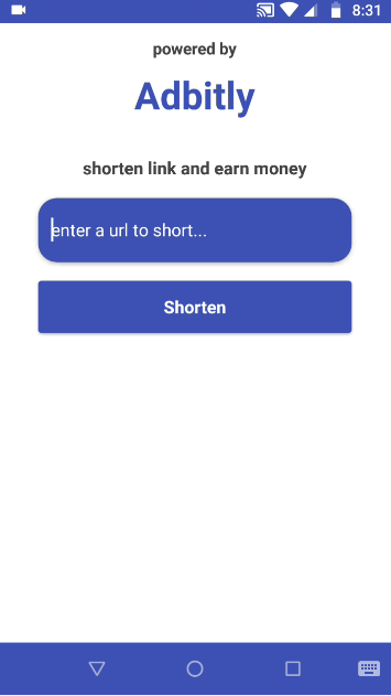 The App will short your long url and when you share the url, you will earn money. App is using Adbitly API and call JSON to get short url.
