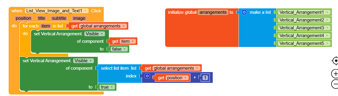 I have a Google Sheets file that contains an Image Link, Title, Subtitle, and the name of a Vertical Arrangement. My app loads this data into a ListView Image & Text component.