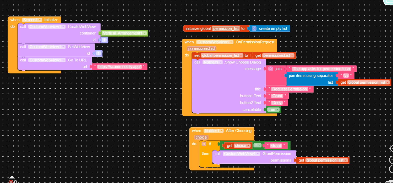 I try it … webview_permissions only run if i get APK ready if i compile on Kodular the AIA file of post the page only freee on android 12 and 14 … , other AIA runs normally.