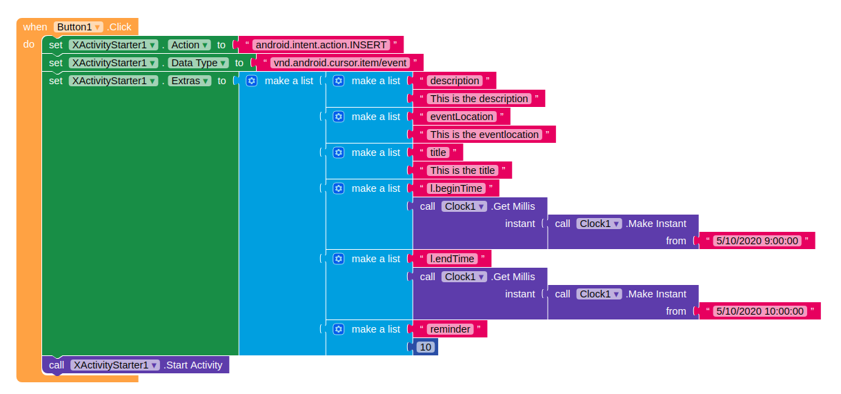 into my app I need to send an event to Goggle Calendar, with date, time, message, and ‘reminder’. Is there any tutorial or somethink like.