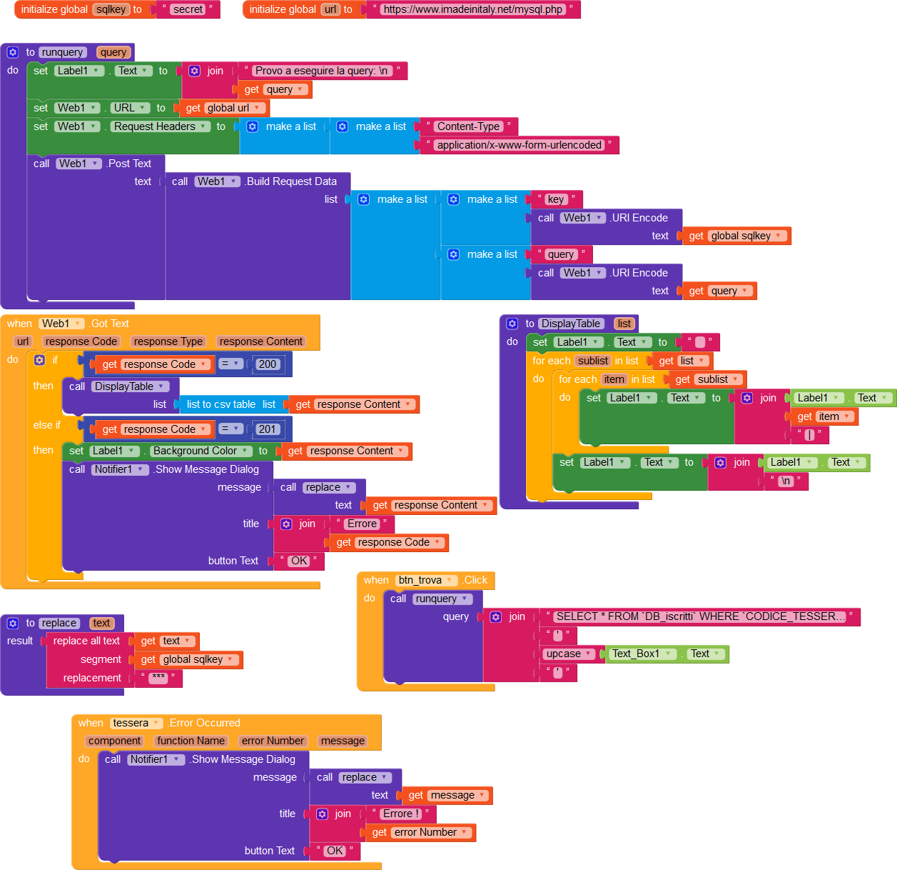 as I can see, you are following the MySQL tutorial from here App Inventor Tutorials and Examples: MySQL | Pura Vida Apps