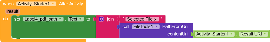 I think the PDF file is not present on your phone ( If the pdf file is present on your phone then please Show your Blocks )