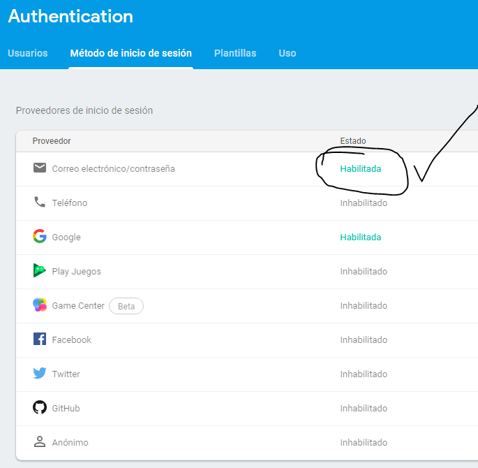 If I try with email and password sign up, doesn´t work. I get a message saying: