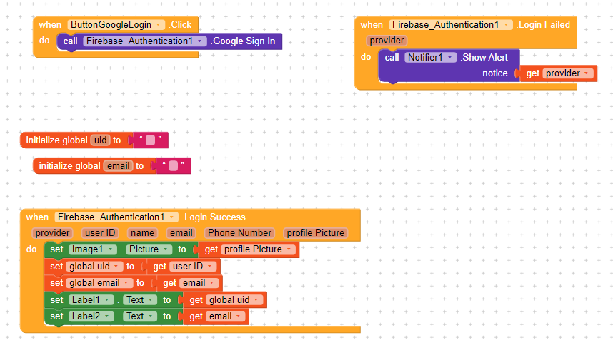 If your emal and passwort sign up component did not work, than you did something wrong. Google sign in do not work in companion app and in your builded APK. The Email/Password Sign in and Login should work. ( for me it works) Your Package Name have to be the same, in your APK and in the google json file.