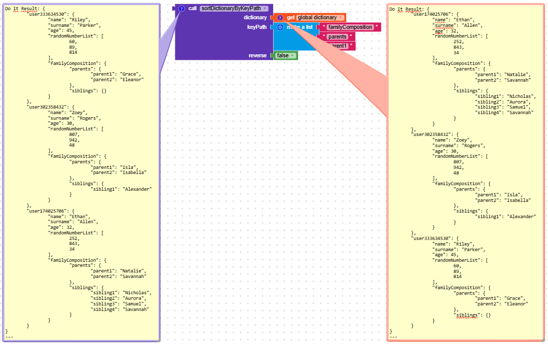 For example, let’s take a dictionary composed of multiple users with this structure and say we want to sort them based on the first parent’s name.