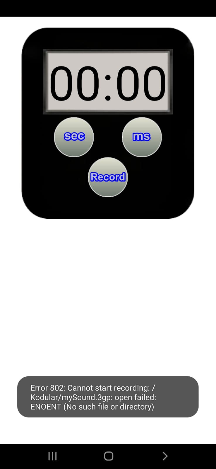 I turn on the recorder button and get an 802 error message, I created my own path to save the recording and still get the same message