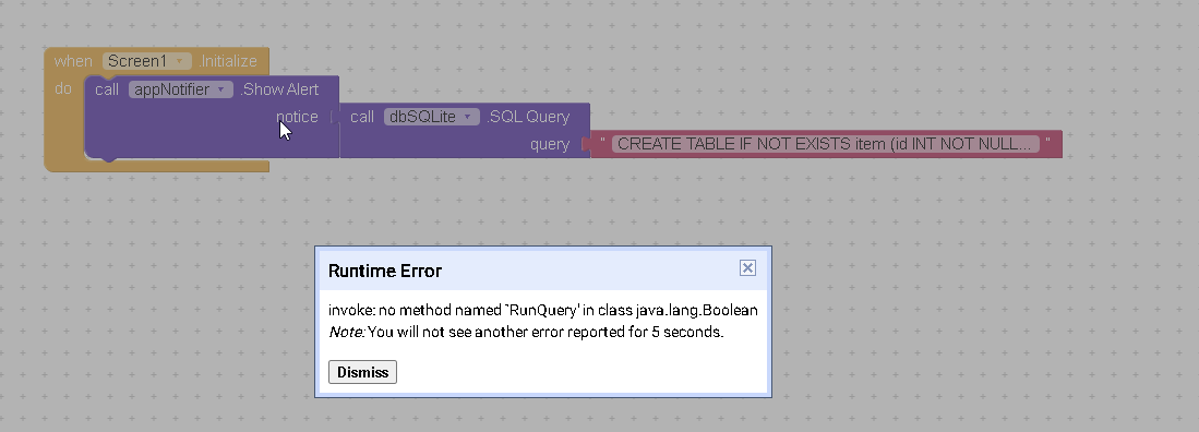 The “Single SQL” made the trick. I had to remove the “Call Notifier” because i was always crashing the application. After I made a raw query I received a message that the Database was created.