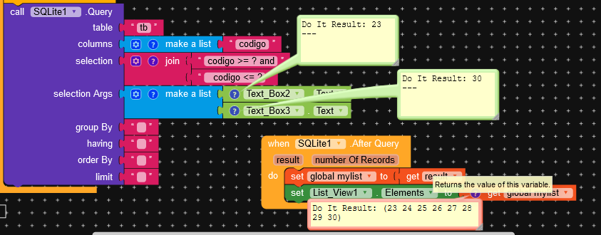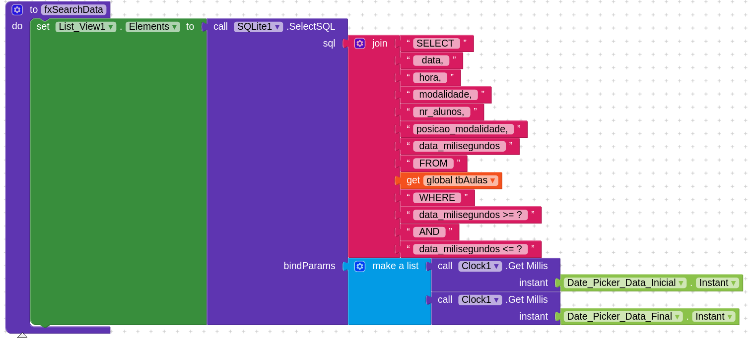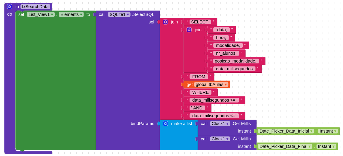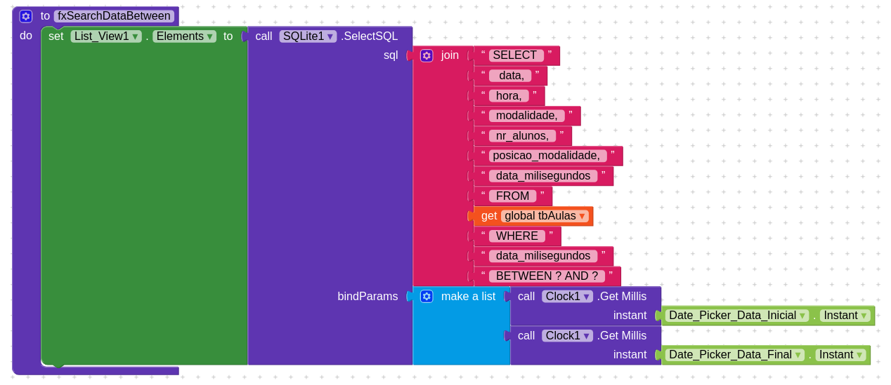 "SELECT … WHERE date_milisecs >= Clock1.getMilis AND date_milisecs "