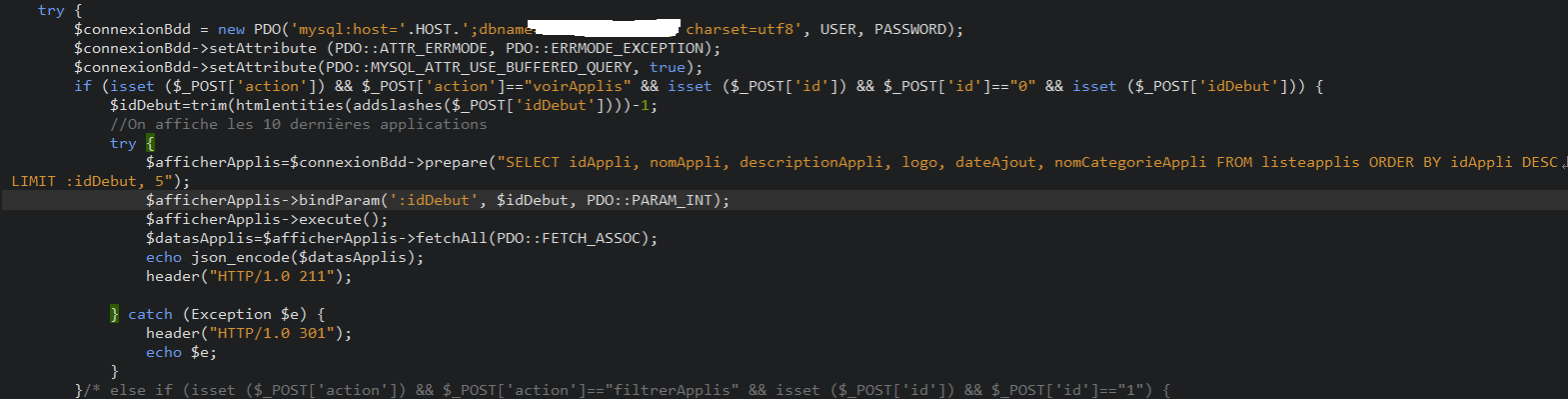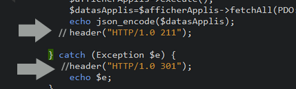 However, if i just add one field in my mysql query (field called descriptionAppli), it do not show response code 211 but 200 that is no where in my php code: