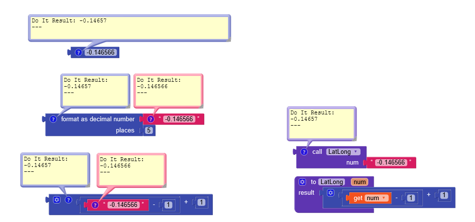 I have tried using “format as decimal” and it does not work when the ‘number’ block is used in the Gmaps Create Marker input.