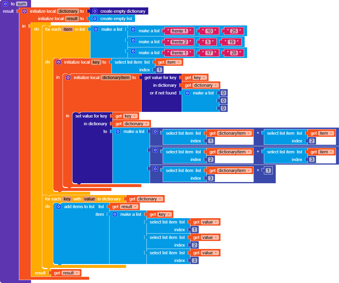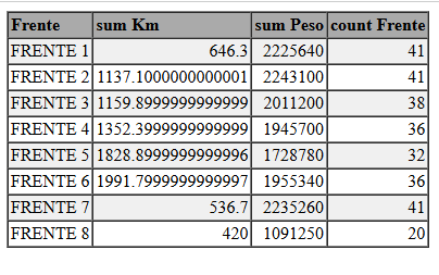 This would list Front 1 and its sum at index 3. (Front 2 sum index 3)