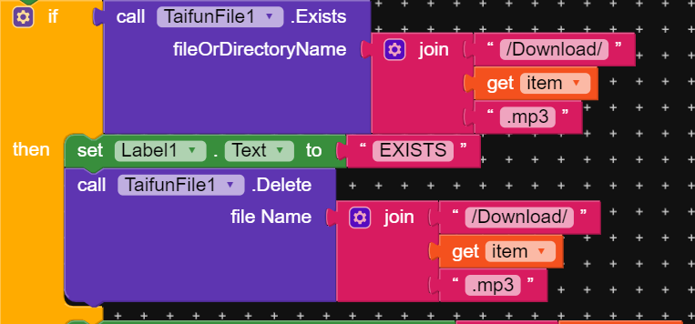 I am trying to check and delete a file from user’s device if it exists. For this, I am using the Taifun File Extension. What I am observing is, that the “Exists” is working perfectly but the “Delete” is not working.