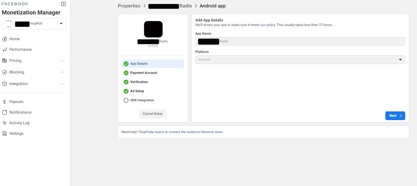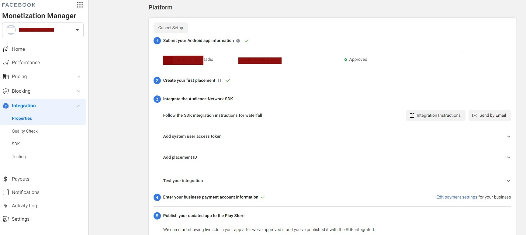 But from my end with AdMob Mediation I get some errors that Can’t retrieve data but on the third part of Facebook Audience Network I have tried to configure everything and my apps show that Facebook has approved my apps.