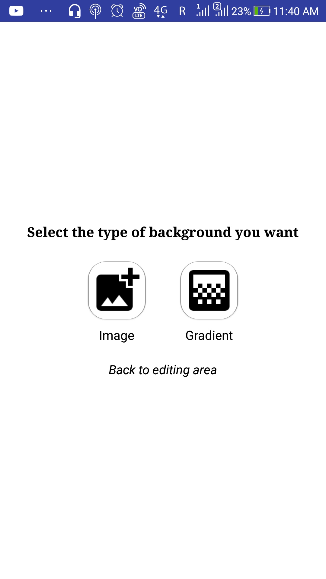 Other than that, I think the rest looks good. Try to make it more dynamic, always show the finished image on screen. Don’t ask in the beginning wether they want a gradient or an image as the background. Start with one of them and show it, then they will decide.