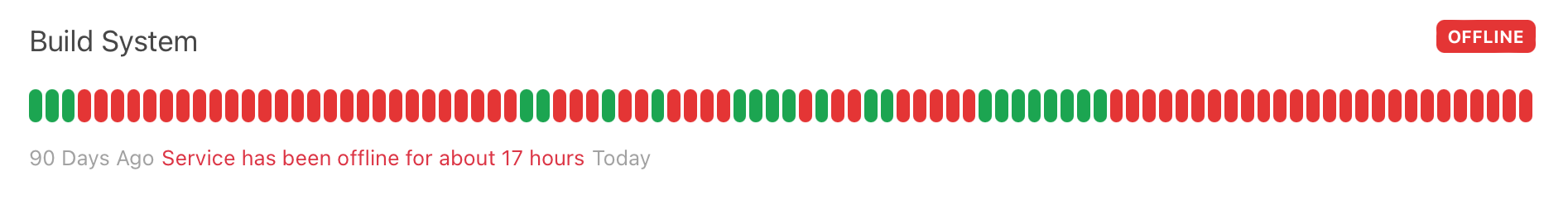 Hi folks! In recent days when I was trying to export my app as apk, it constantly said that “the build server is currently busy”. I tried building my apks for the past few days and not a single day it has succeeded. Today, I checked the server status, and the webpage says it is currently offline, and it has been red since 12/17/2023. The status is shown below.