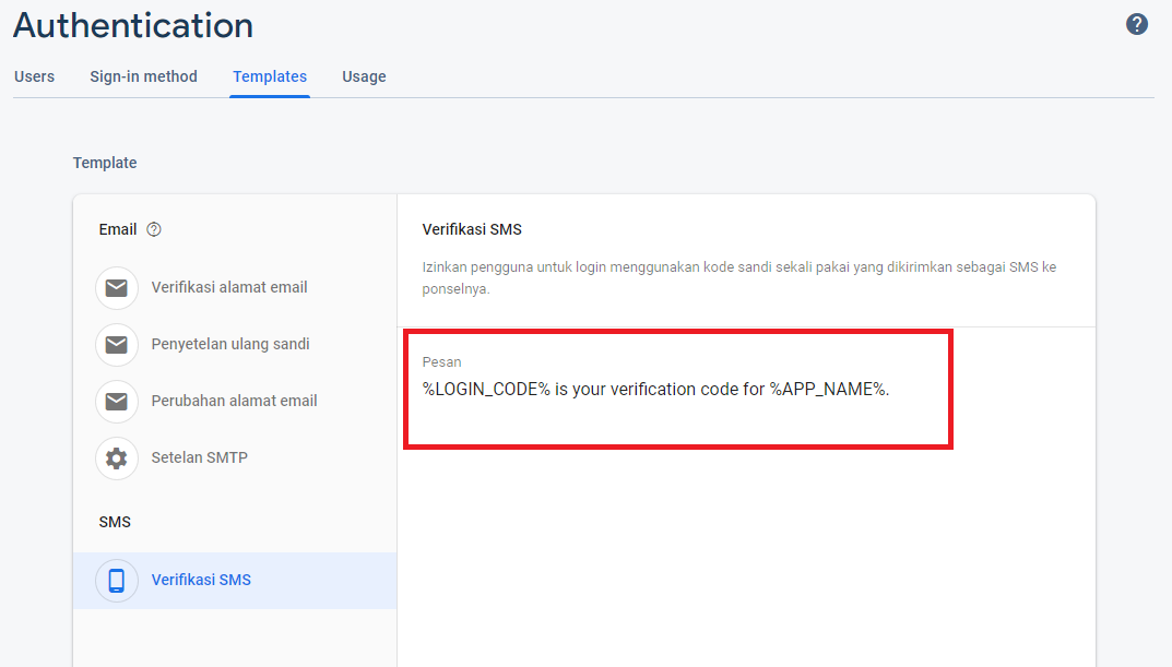 my Firebase database. It’s a default template that Firebase give to send an OTP SMS.