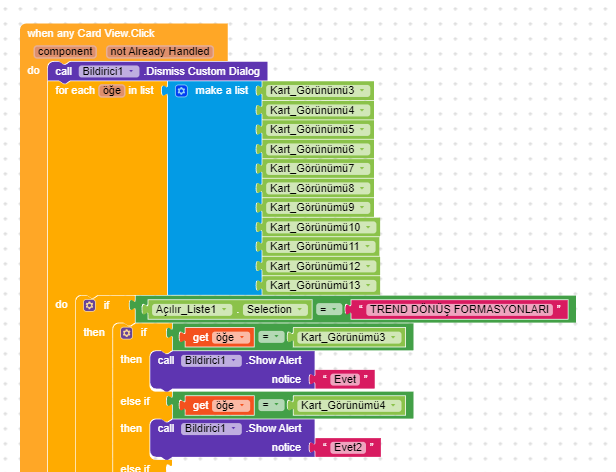 I don’t know enough English. I have 43 Card Views in my project. So I think it would be better to do it this way. My problem is that all the “if” commands run sequentially when I click on any cardview.