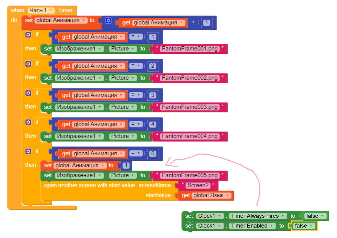 I think I got it. Tell me if I think I need to turn them off at the end of “Часы1” after they execute the command to go to another screen?