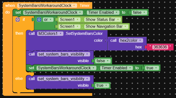 Now, Screen1.Height has changed to only return the safe form height. However, this means that an arrangement filling the screen can be bigger than the screen if a system bar is hidden. We can use this to our advantage.