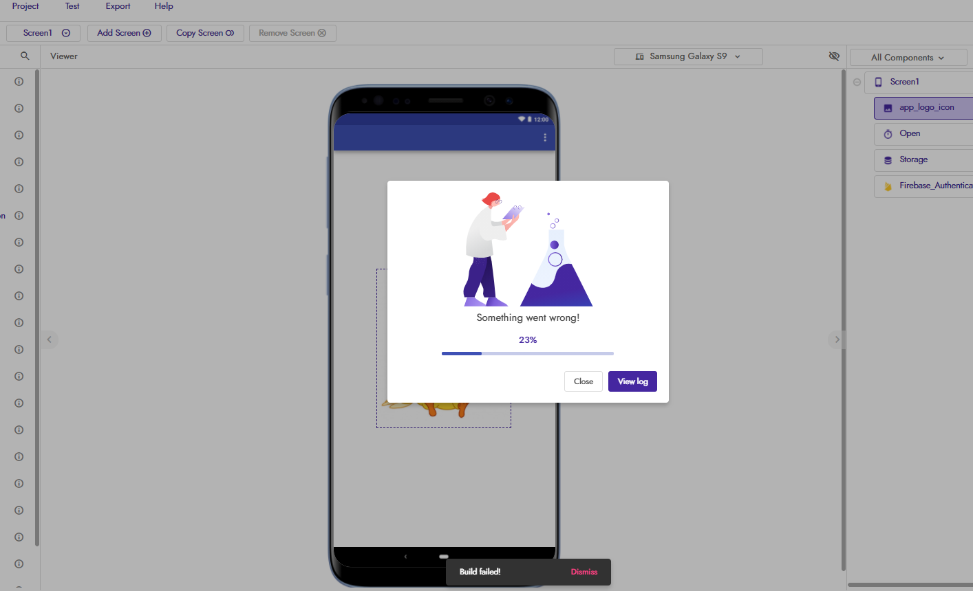 Hello everyone, I’m just new in kodular and I’m working on my project with a signin, signup, and forget password features. I want to export it since firebase authentication doesn’t work in test mode. But, I can’t export it because there are errors in compiling. I searched some questions here regarding apk files that have errors in exporting. I already double checked if my package name is the same upon getting the json file from firebase, and it’s the same. I also looked into my blocks. I tried closing the project and reopening it, and even tried opening it on another browser but still, it doesn’t work. My assets are not that heavy too.