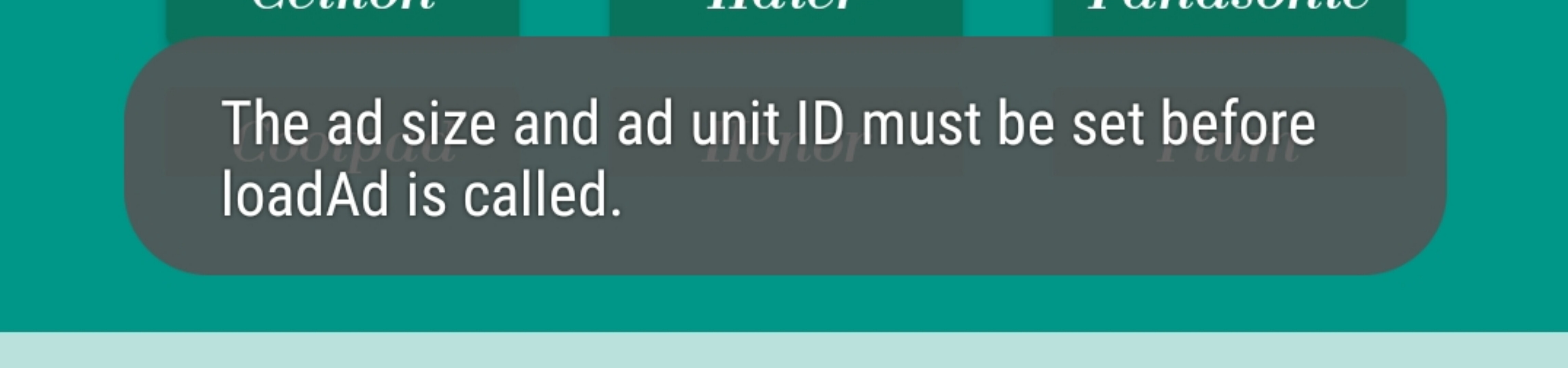 error popping up " The ad size & ad unit must be set before loadAd is Called " although we set the App ID property + Block setting as well.