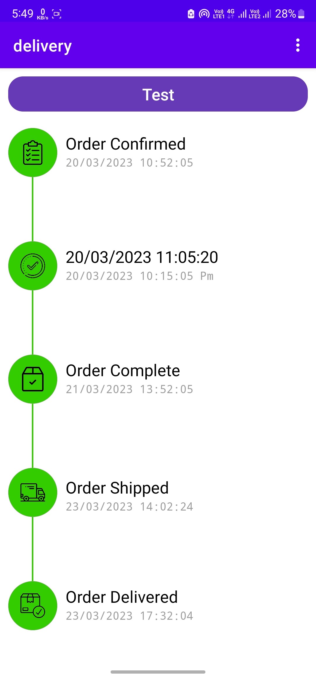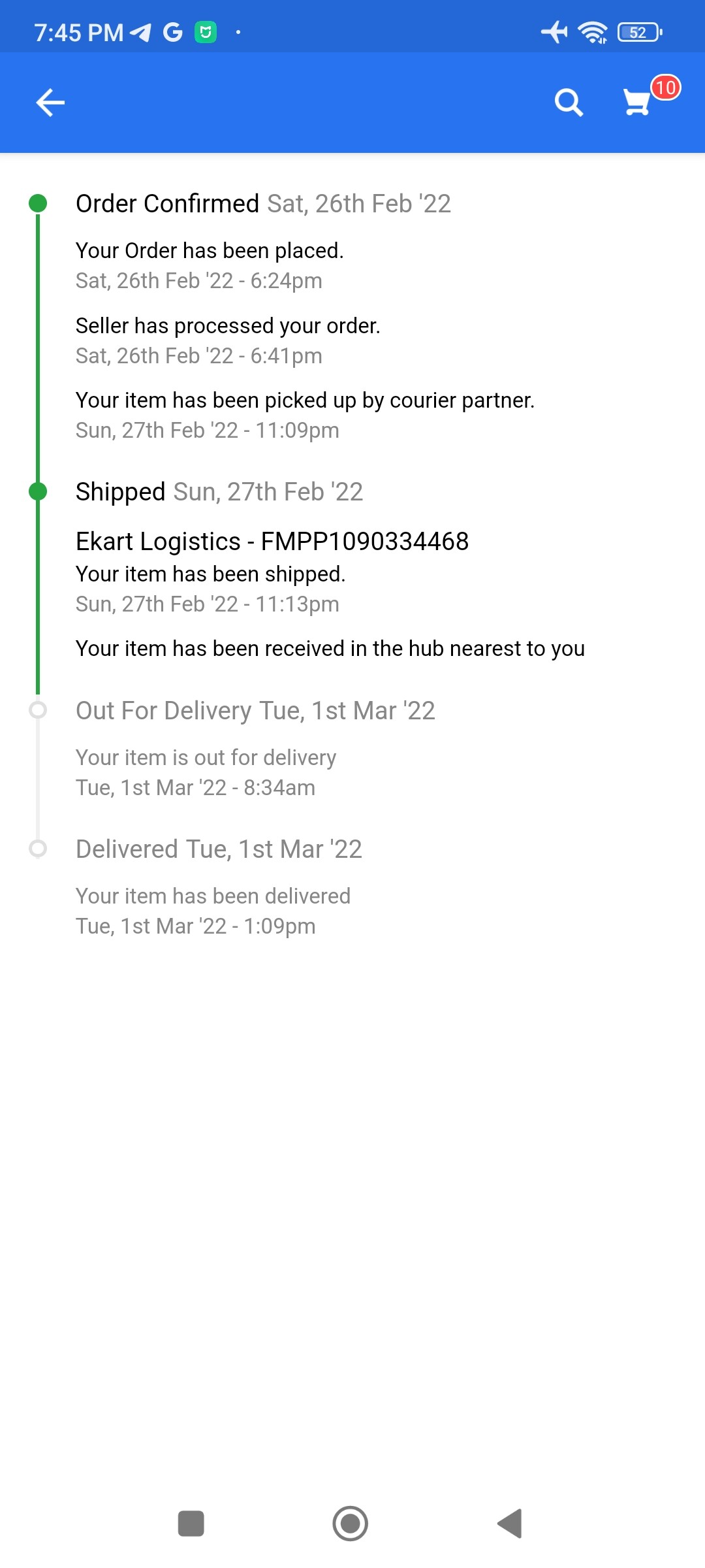 After shipped green background notification. Order shipped,. Showing method
